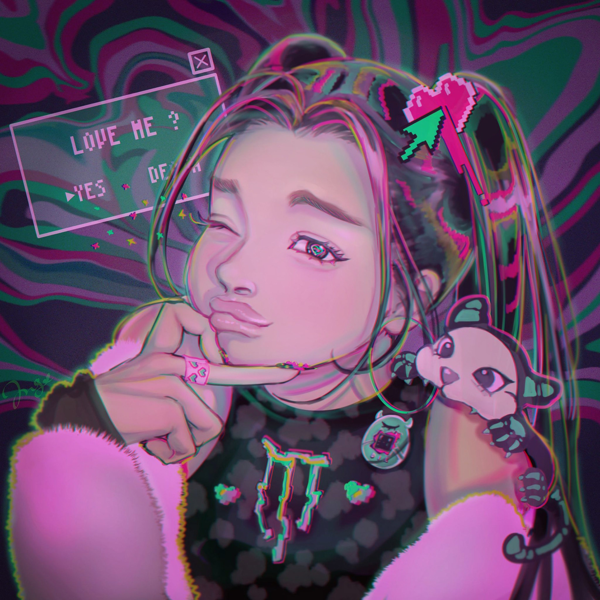 A design-oriented illustration highlighting expressive line art and vibrant color play.